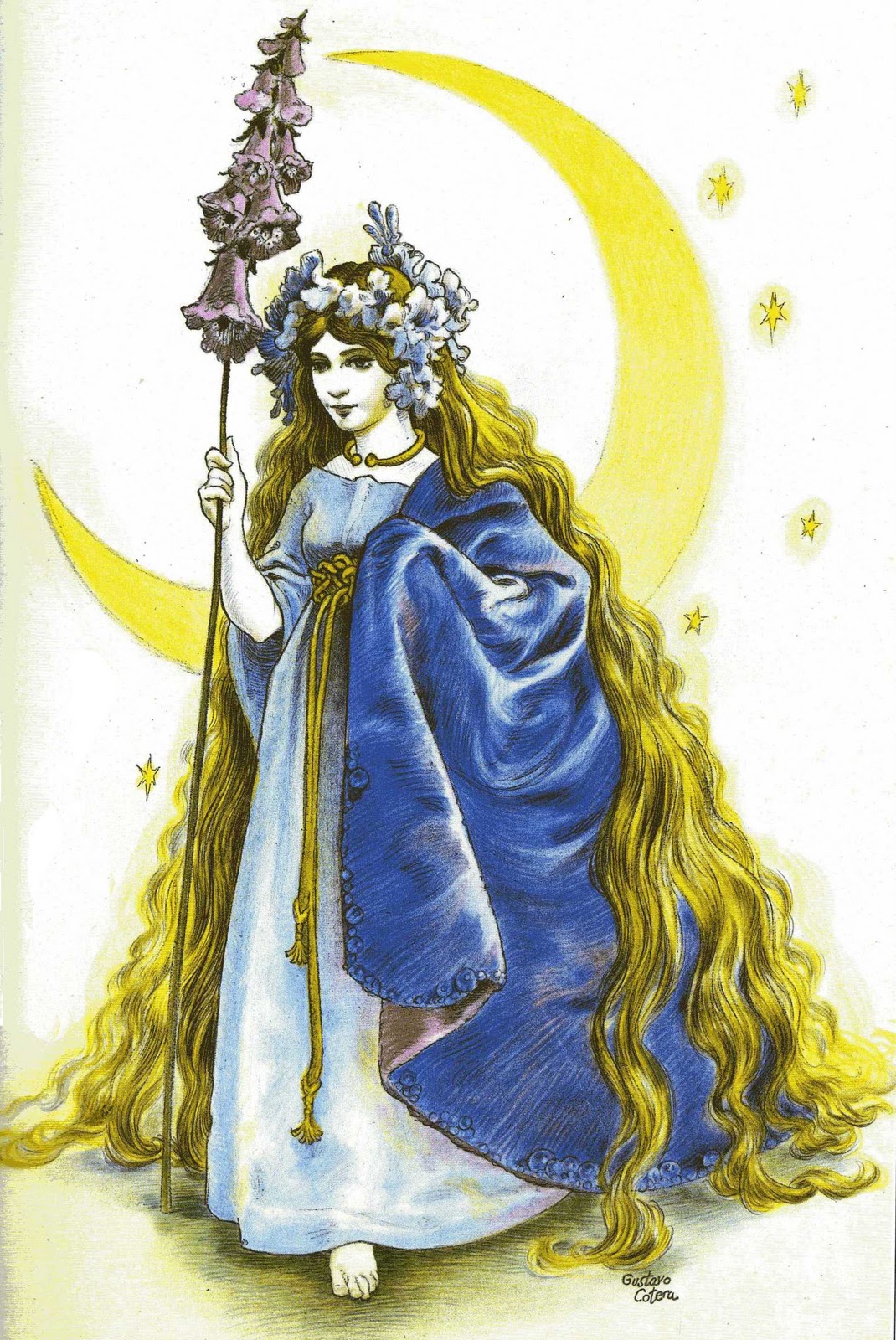 Antes del amanecer, aderezan sus cabelleras con peines de coral y lazos de seda, luego se arrodillan para rezar una jaculatoria y parten a recorrer los senderos al frío de la madrugada. Al mediodía vuelven a sus palacios, pero antes han limpiado las fuentes, bendecido a los rebaños de los buenos pastores y acariciado las desgarraduras de los árboles. Cuando anochece, dan otro paseo por el monte y, al volver a sus aposentos, duermen en lechos resplandecientes como la luna.En primavera adornaban sus cabezas con coronas de flores y, cuando llegaba la medianoche, se reunían y danzaban hasta el amanecer cogidas de la mano en torno a un montón de rosas que luego esparcían por los atajos y senderos. El que encontraba una de estas rosas, que tenían los pétalos rojos, verdes, amarillos y azules, sería feliz durante toda su vida. También se reunen todos los domingos en la braña para cantar; después se despedían con un beso hasta el próximo domingo si hacía buen tiempo.
